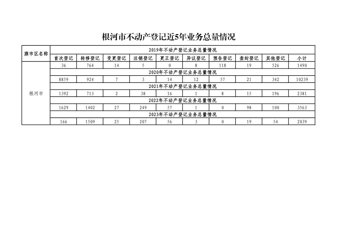 根河市不动产登记业务近五年业务总量情况