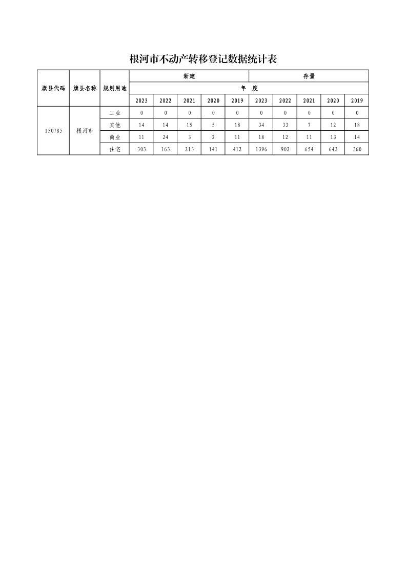 根河市不动产转移登记数据统计表