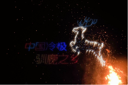 11月6日当天,敖鲁古雅使鹿部落景区率先开启冰雪预热模式。圣诞主题邮局、北欧萨米电影展映等创新性消费场景让观众沉浸式感受泛北极圈文化共鸣。随后篝火盟约点燃全场,人们手拉着手围着篝火起舞,在寒冷的冬日感受饱含乡土情和烟火气的温暖。数百架无人机在天空勾勒出“歌游内蒙古”“呼伦贝尔大草原”“敖鲁古雅”“中国冷极”等图案,光影与夜空交相辉映之间,成为当晚最亮眼的风景。夜晚,《天南海北一家人歌友会》于根河市国家级非物质文化遗产展演中心上演,歌声与欢笑之中,不仅展现了多元文化的深入交融,更彰显了内蒙古地区文化事业发展成果。