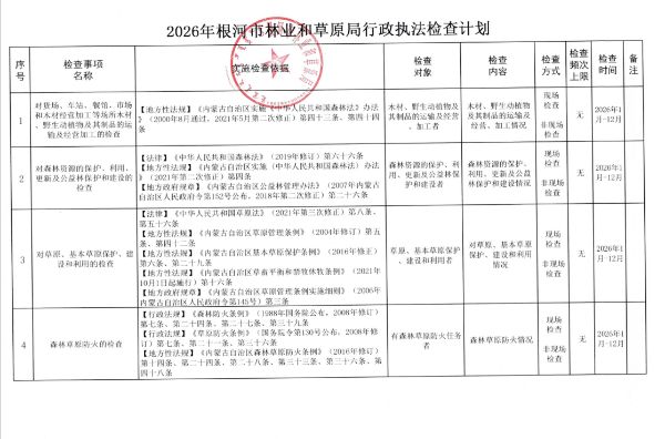 2026年根河市林业和草原局行政执法检查计划