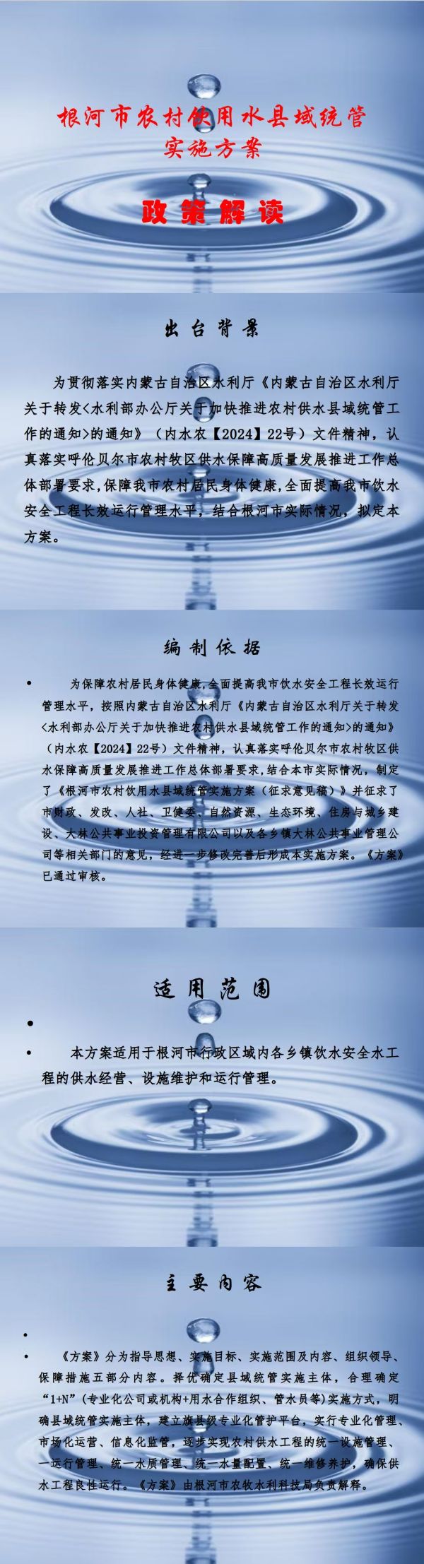〖图文解读〗《根河市农村供水县域统管实施方案》