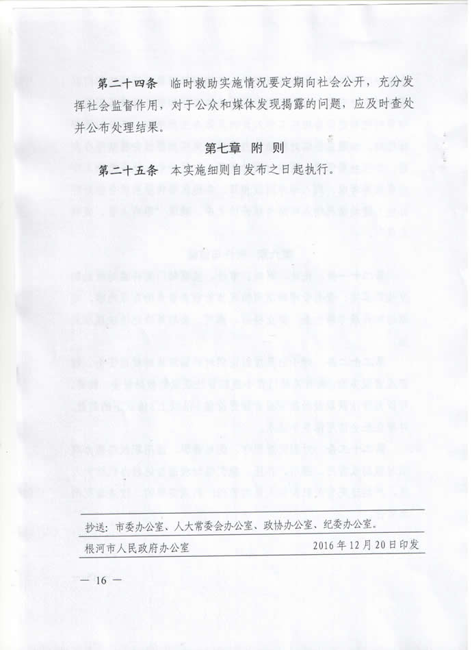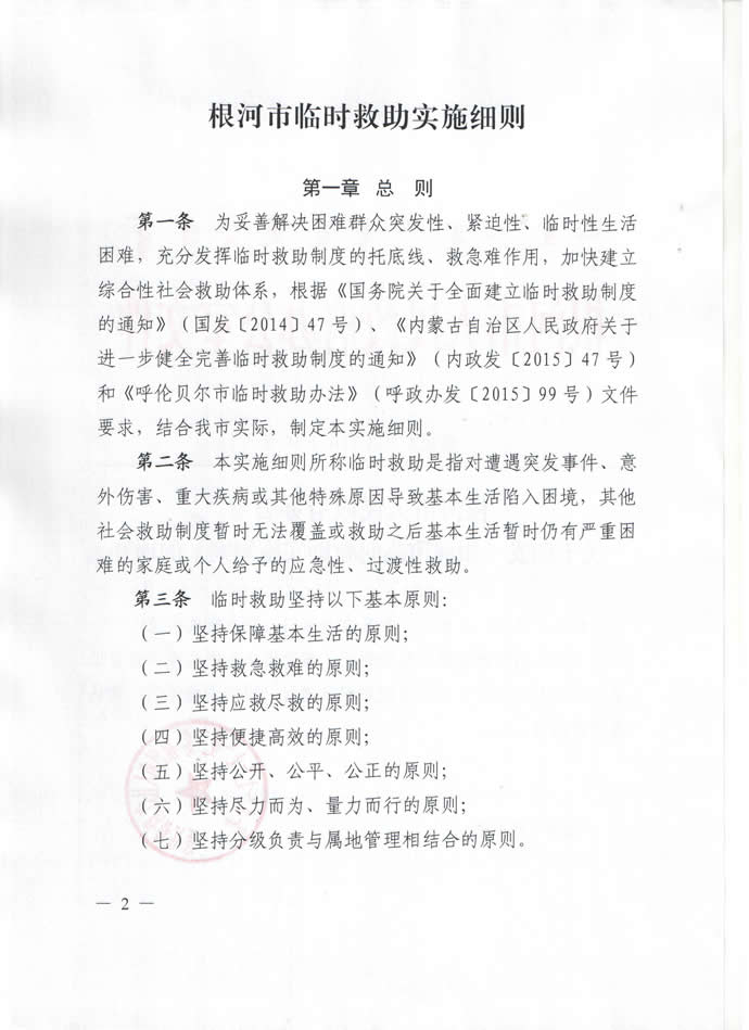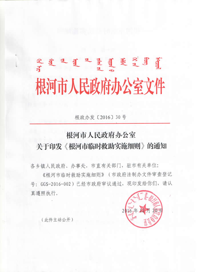 根河市人民政府办公室关于印发《根河市临时救助实施细则》的通知